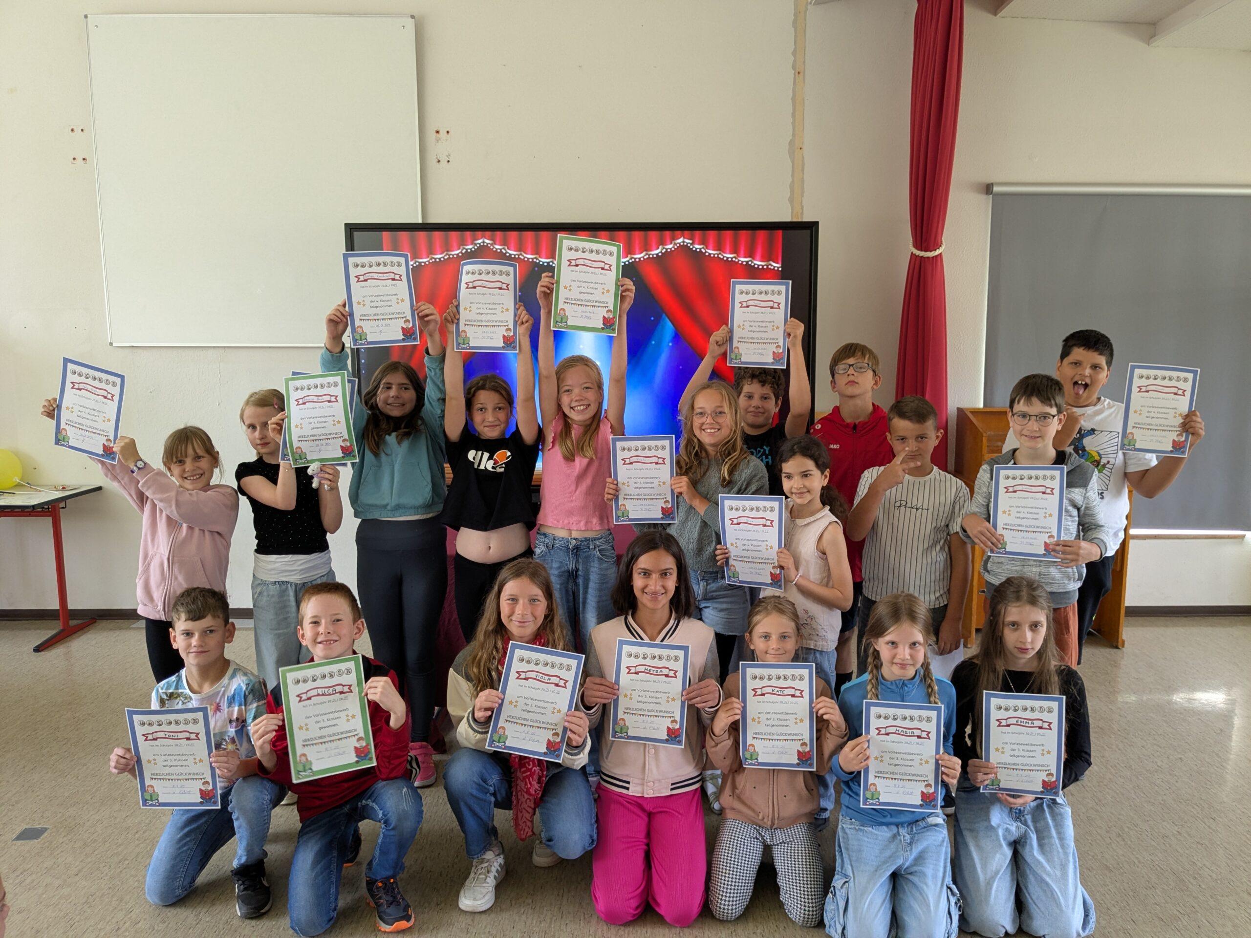 Neben der Flöten-AG, der Klasse 2 mit einem Buchstaben-Rap und Klasse 4 mit einem Lied, führten die 3. Klassen ein Theaterstück vor vom ‚Löwen, der nicht schreiben konnte‘.